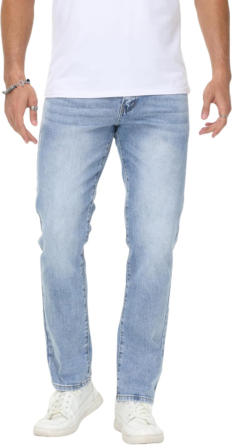 men Stretch Regular Fit Straight-Leg Cotton Fashion Comfort Flex Waist Denim Pants Jeans
